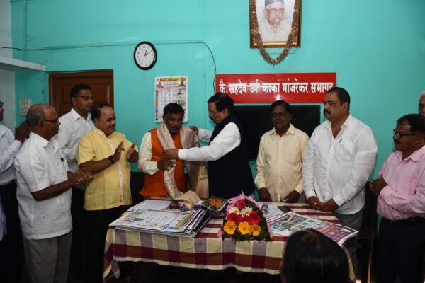 मुंबई प्रतिनिधी कामगार मंत्री आकाश फुंडकर यांची आज मंत्रालय मुंबई येथे श्रमिक कामगार संघटना अध्यक्ष प्राजक्त पंढरी चव्हाण व श्रमिक कामगार संघटना ठाणे जिल्हा अध्यक्ष राजेश सुस्विरकर यांनी भेट घेऊन शुभेच्छा देण्यात आल्या. यावेळी सिंधुदुर्ग जिल्ह्यातील बांधकाम कामगार, घरेलु कामगार यांच्या प्रश्र्नांविषयी चर्चा करण्यात आली. सिंधुदुर्ग जिल्ह्यातील बांधकाम कामगार व घरेलु कामगार यांचे प्रश्न अजून…