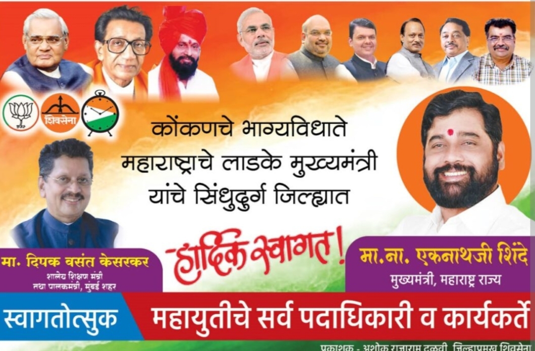 महाराष्ट्र राज्याचे लाडके मुख्यमंत्री श्री एकनाथजी शिंदे यांचे सिंधुदुर्ग जिल्ह्यात हार्दिक स्वागत💐💐