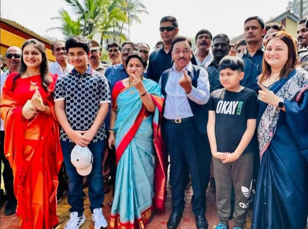 माजी केंद्रीय मंत्री तथा खासदार नारायण राणे यांनी कणकवली तालुक्यातील वरवडे – फणसनगर येथील शाळेत सहकुटुंब आपल्या मतदानाचा हक्क बजावला. यावेळी त्यांच्यासोबत सौ. नीलम राणे, सौ. प्रियांका राणे, सौ. ऋतुजा राणे आदी उपस्थित होते