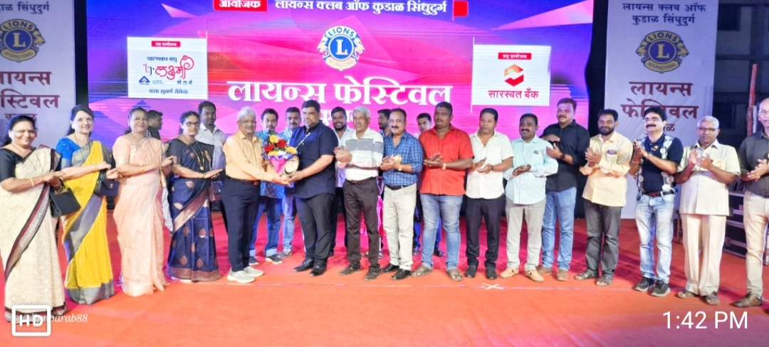 लायन्स क्लब कुडाळच्या वतीने कुडाळ हायस्कुल मैदान येथे सिंधू लायन्स ऑटो एक्सपो इंडस्ट्रियल कम फूड फेस्टिवल २०२४ चे आयोजन करण्यात आले असून या लायन्स फेस्टिवलला माजी आमदार वैभव नाईक यांनी रविवारी भेट देऊन शुभेच्छा दिल्या. सांस्कृतिक कार्यक्रमाबरोबच सामाजिक आणि शैक्षणिक क्षेत्रात लायन्स क्लबचे उल्लेखनीय काम असल्याचे वैभव नाईक यांनी यावेळी सांगत लायन्स क्लबचे आणि सदस्यांचे कौतुक केले. यावेळी लायन्स क्लबच्या वतीने मा. आ. वैभव नाईक यांचा सत्कार करण्यात आला. याप्रसंगी त्यांनी विविध स्टॉलला भेट दिली.