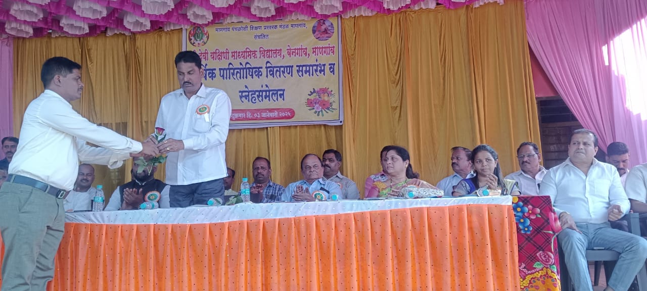 माणगाव येथील यक्षिणी माध्यमिक विद्यालय बेनगाव या शाळेचे वार्षिक स्नेहसंमेलन पारितोषिक वितरण समारंभ व विद्यार्थी गुणगौरव कार्यक्रम नुकताच संपन्न झाला या कार्यक्रमासाठी प्रमुख पाहुणे म्हणून दत्ता सामंत उपस्थित होते यावेळी दत्ता सामंत यांनी या विद्यालयाच्या शैक्षणिक साहित्याची गरज लक्षात घेता शैक्षणिक साहित्य खरेदी करण्यासाठी रोख 50 हजार रुपयाची देणगी या शाळेला दिली. व यापुढे आपण या शाळेला सर्वतोपरी मदत करू अशी ग्वाही देत विद्यार्थ्यांनी यश संपादन करून आपले आणि या शाळेचे नाव उज्वल करावे असे उद्गार काढले.