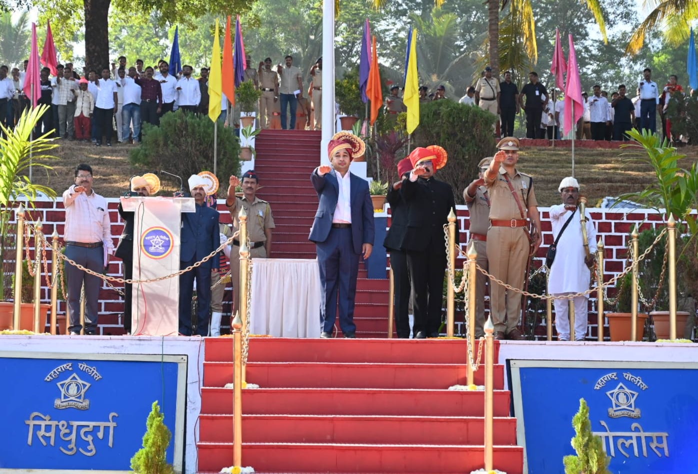 यावेळी आमदार निलेशजी राणे, जिल्हाधिकारी अनिल पाटील, एस.पी. सौरभ कुमार अग्रवाल, सीईओ मकरंद देशमुख, जिल्हा बँकेचे अध्यक्ष मनीष दळवी यांच्या सह सर्व विभागाचे अधिकारी, कर्मचारी, विविध विद्यालयातील विद्यार्थी उपस्थित होते.