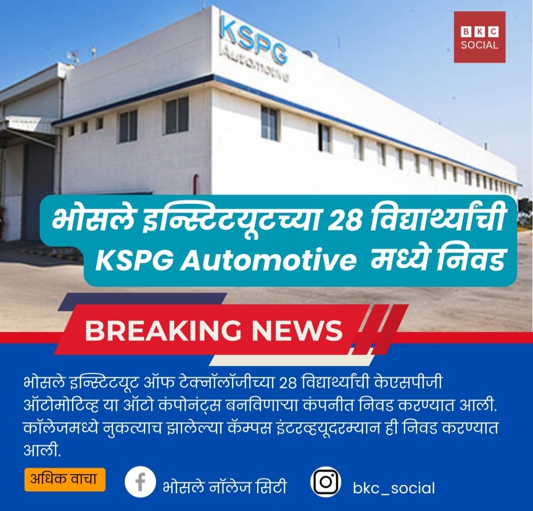 यशवंतराव भोसले इन्स्टिटयूट ऑफ टेक्नॉलॉजीमध्ये केएसपीजी ऑटोमोटिव्ह या आघाडीच्या जर्मन कंपनीतर्फे कॅम्पस इंटरव्हयू घेण्यात आले. यामध्ये कॉलेजच्या २२ विद्यार्थ्यांची अंतिम निवड होऊन त्यांना नियुक्तीपत्रे प्रदान करण्यात आली.