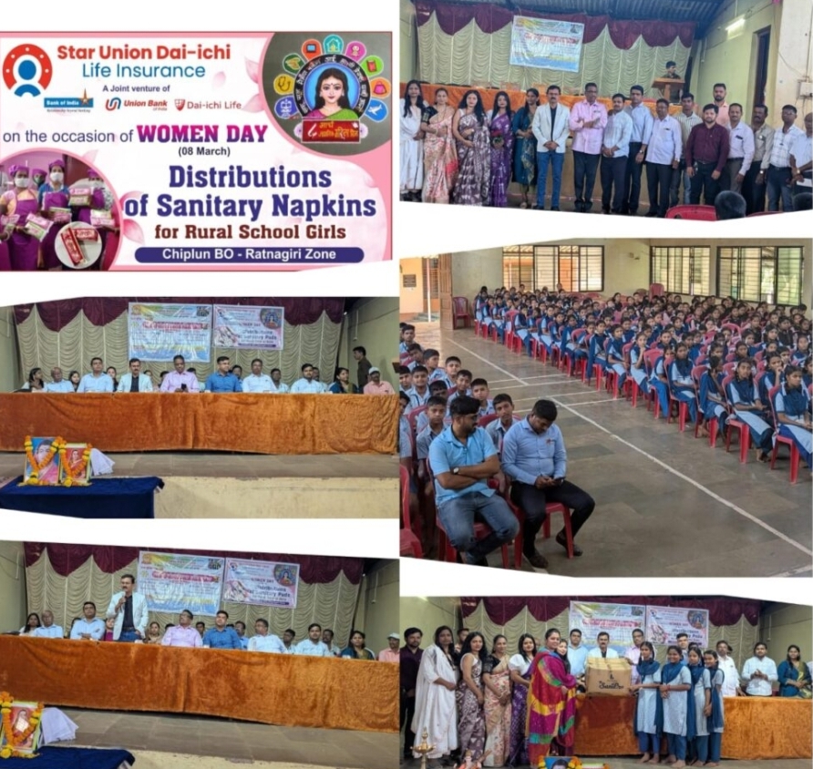 ८ मार्च जागतिक महिला दिनाचे औचित्य साधून स्टार युनियन दायइची लाइफ इन्शुरन्स कंपनीच्या माध्यमातून रत्नागिरी आणि सिंधुदुर्ग जिल्ह्यामधील ग्रामीण भागातील शाळांमधील मुलींना 5000 सॅनिटरी नॅपकिन्स वाटप करण्यात आले, सदर कार्यक्रमाची सुरुवात आज कनेडी हायस्कूल मध्ये करण्यात आली सदर हायस्कूलमधील मुलींसाठी 1000 सॅनिटरी नॅपकिन्स आज च्या दिनी शाळेचे मुख्याध्यापक, संस्थेचे अध्यक्ष आणि शाळेतील मुली यांना सुपूर्द करण्यात आले सदर कार्यक्रमाच्या वेळी स्टार इंडियन दाईची लाईफ इन्शुरन्स शाखा कणकवली त्याच्या वतीने श्री मकरंद नाईक डेप्युटी एरिया मॅनेजर सिंधुदुर्ग, श्री संदेश सावंत टेरिटरी मॅनेजर कणकवली तसेच कनेडी शिक्षण प्रसारक मंडळाचे अध्यक्ष सतीश सावंत, त्यांचे सर्व संस्था चालक प्रशालेचे मुख्याध्यापक श्री दळवी, बँक ऑफ इंडियाचे स्टाफ असोसिएशनचे निखिल साटम, आणि स्टार युनियन दाईची लाइफ इन्शुरन्स कंपनीचे सर्व पदाधिकारी उपस्थित होते.
