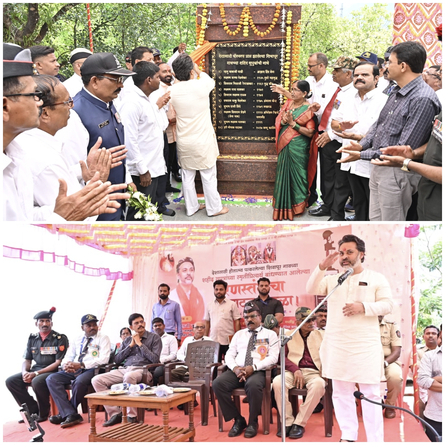 शिवापूर येथील शहीद दहा जवानांच्या स्मृतिप्रीत्यर्थ उभारलेल्या रणस्तंभाचे झाले आमदार निलेश राणे यांच्याहस्ते अनावरण