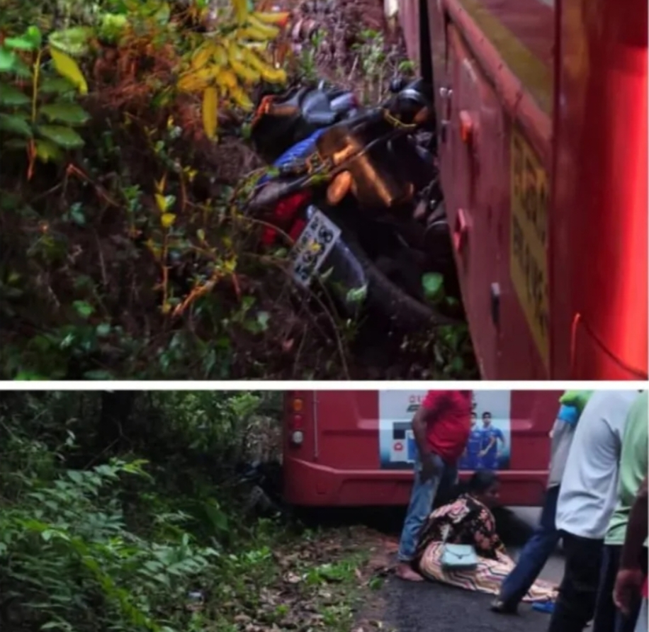 एसटी बस च्या चाकाखाली गेली मोटरसायकल