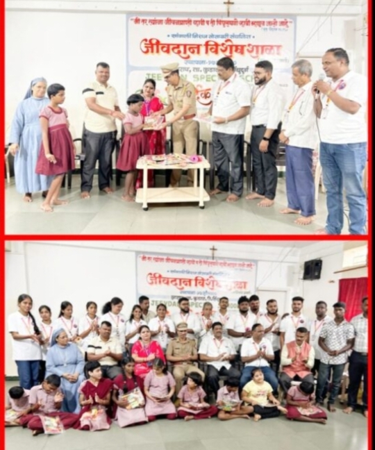 झाराप येथील जीवदान विशेष शाळेतील बालकांना शैक्षणिक साहित्य,खाऊचे वाटप.