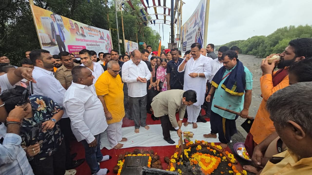 यावेळी माजी खासदार गोपाळ शेट्टी, स्थानिक आमदार संजय उपाध्याय, भाजपा जिल्हाध्यक्ष बाळा तावडे यांसह स्थानिक नागरिक व कोळी बांधव उपस्थित होते.