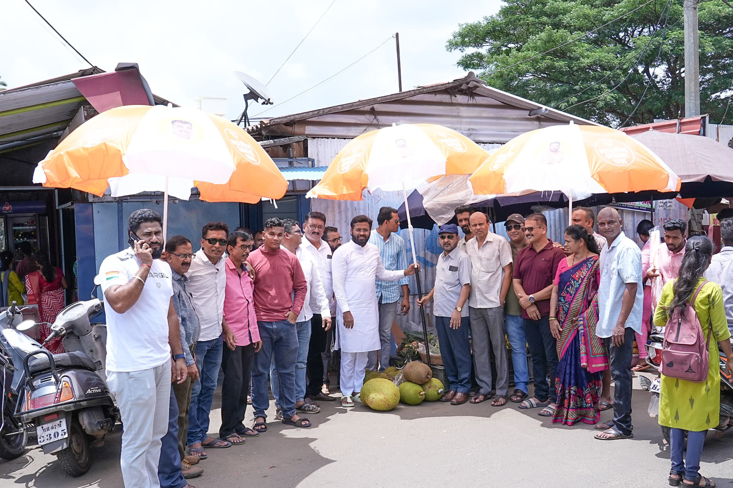 उन्हाळा, पावसाळा या ऋतूंमध्ये व्यापारी भाजीपाला तसेच इतर सुविधा आपल्याला उपलब्ध करून देत असतात. त्यांच्या संरक्षणासाठी एक मायेचे छत्र म्हणून युवा उद्योजक विशाल परब यांच्या माध्यमातून छत्रीचे वाटप करण्यात आले. या छत्र्यांवर भारताचे पंतप्रधान नरेंद्र मोदी, केंद्रीय मंत्री तथा नवनिर्वाचित खासदार नारायणराव राणे, जिल्ह्याचे पालकमंत्री रवींद्र चव्हाण आणि विशाल परब यांचा उल्लेख आहे.