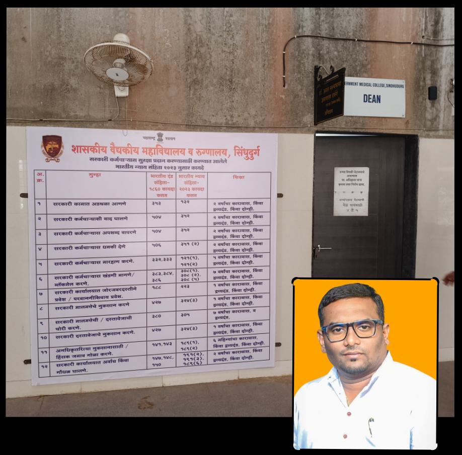 शासकीय वैद्यकीय महाविद्यालय व रुग्णालय सिंधुदुर्गच्या भोंगळ कारभाराबाबत रोज अनेक बाबी समोर येत असून डीन मनमानी पद्धतीने कारभार हाकत आहेत. अधिष्ठातांच्या या आडमुठ्या धोरणामुळे जिल्ह्यासाठी मंजूर झालेले आयुष हॉस्पिटल मागील वर्षभर सुरू होऊ शकले नाही हे उदाहरण ताजे असतानाच आता भेटण्यासाठी येणाऱ्या अभ्यंगतांना “गुन्हे दाखल करू” असा संदेश देत धमकावण्याचे प्रकार सुरु केल्याचा आरोप सामाजिक कार्यकर्ते प्रसाद गावडेंनी केला आहे. आपण “लोकसेवक आहात की मालक” असा खरमरीत सवाल करत जनतेसमोर खुलासा सादर करण्याची मागणी पत्राद्वारे केली आहे. या पत्रात रुग्णालयात जिल्ह्यातील रुग्णांना मिळणाऱ्या तकलादू आरोग्य सेवेबाबत तक्रारी करण्यासाठी येणाऱ्या नागरिकांना भीती घालण्यासाठी किंवा ते येऊच नयेत ह्यातून सुटका करून घेण्यासाठी डीननी शासकीय कर्मचाऱ्यांच्या सुरक्षिततेसाठी भारतीय न्याय संहिता व दंड संहितेतील असलेल्या तरतुदी बँनर द्वारे दालनाच्या बाहेर लावून सर्वसामान्य नागरिकांना धमकावण्याचा प्रयत्न केला असल्याचा आरोप गावडेंनी केला आहे. एकीकडे रुग्णांना चांगली आरोग्य सेवा मिळत नाही म्हणून रुग्ण “रेफर” करायला लाज म्हणून “डिस्चार्ज” दाखवले जातात अशा तक्रारी असताना खुलासा म्हणून पेशंट किंवा पेशंटशी संबंधित नातेवाईकांकडून तक्रारी प्राप्त नाहीत असे कळवले जाते तर दुसरीकडे नागरिकांना पोलिसांची भीती घालून वेळ मारून नेण्याचे काम अधिष्ठाता करत असल्याचा आरोप गावडेंनी करत अशा पद्धतीचा फलक शासकीय कार्यालयात व दालनाबाहेर लावण्यासाठी कोणत्या शासन निर्णय व परिपत्रकांचा आधार घेतला याचा खुलासा अधिष्ठतांनी सिंधुदुर्ग वासियांना द्यावा अशी मागणी पत्रातून केली आहे. अन्यथा लोकशाही मार्गाने “सविनय कायदेभंग” आंदोलन करण्याचा इशारा देत सदरचा बॅनर हटवावा अशी मागणी सामाजिक कार्यकर्ते प्रसाद गावडे यांनी अधिष्ठतांकडे पत्राद्वारे केली असून आपण लोकसेवक आहात की मालक असा खरमारीत सवाल देखील पत्रातून केला आहे. वरिष्ठ कार्यालयाच्या परवानगीशिवाय व शासन निर्णय परिपत्रकांशिवाय अशा पद्धतीचा बॅनर दालनाबाहेर लावणे हीच गोष्ट मुळात बेकायदेशीर असून शिस्त अभंगाच्या कारवाईस प्राप्त असल्याचे देखील गावडे यांनी पत्रात म्हटले आहे.