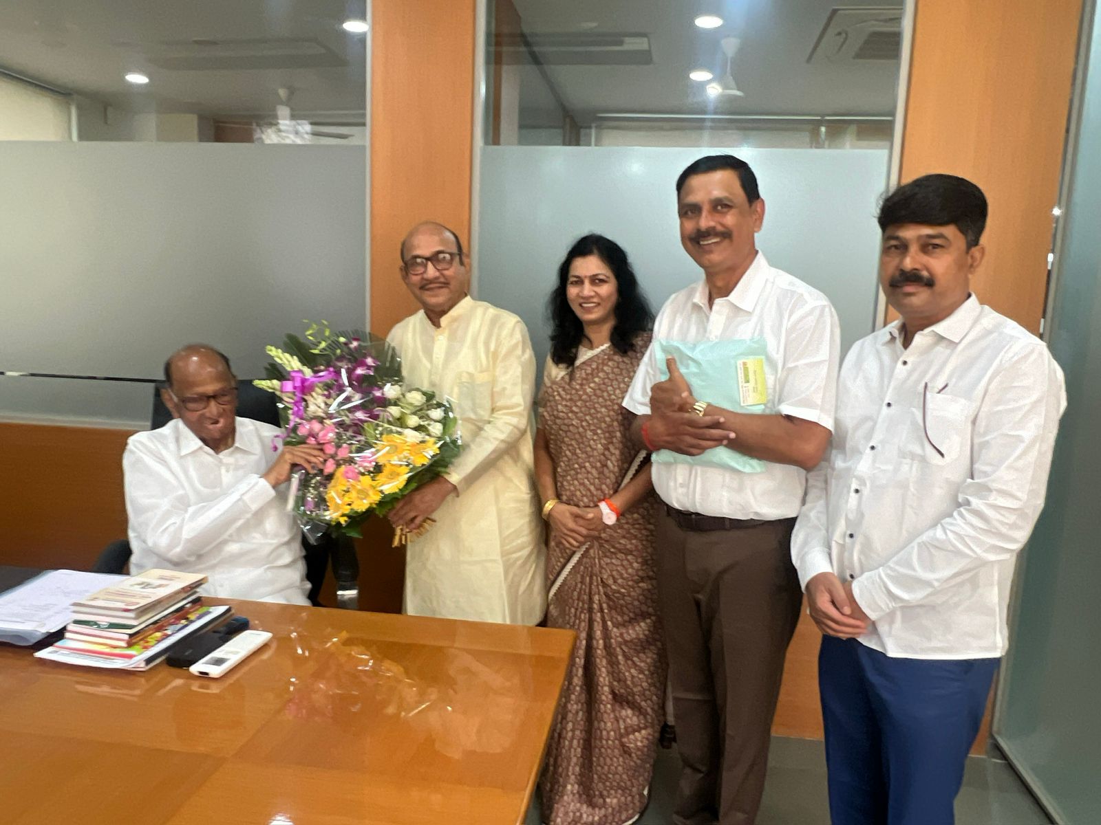 राष्ट्रवादी काँग्रेस पार्टीच्या वर्धापन दिनानिमित्त पक्षाचे संस्थापक अध्यक्ष मा. शरदचंद्र पवार साहेबांची भेट सिंधुदुर्ग जिल्ह्यातील पदाधिकाऱ्यांनी घेतली. पुणे मोदीबाग येथे ही भेट घेण्यात आली. १० जून २०२४ रोजी राष्ट्रवादी काँग्रेस शरदचंद्र पवार पार्टी वर्धापन दिनाचा जल्लोष विजयोत्सव, सायंकाळी न्यू आर्टस, कॉमर्स आणि साइन्स कॉलेज, लाल टाकी रोड, दिल्ली गेटच्या मागे, अहिल्यानगर, नगर येथे होत आहे. पक्षाचे संस्थापक अध्यक्ष आदरणीय मा.शरदचंद्र पवार साहेब यांच्या उपस्थितीत हा सोहळा होणार आहे. या निमित्ताने आलेल्या पदाधिकाऱ्यांनी आदरणीय मा. शरदचंद्र पवार साहेबांची सदिच्छा भेट घेत त्यांना शुभेच्छा दिल्या व आशीर्वाद घेतले.