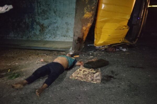 मळगाव पुलावर आयशर डंपर पलटी होऊन युवक ठार