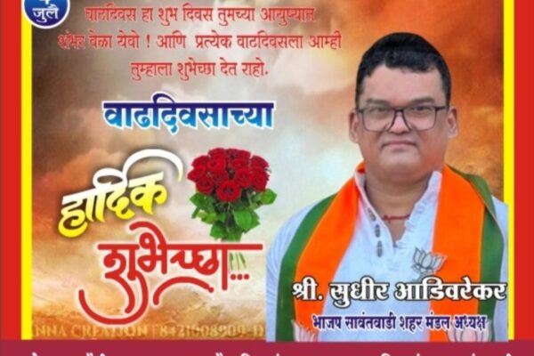 सावंतवाडी भाजपचे युवा नेतृत्व तथा शहराध्यक्ष व युवा सामाजिक कार्यकर्ते श्री सुधीर आडिवरेकर यांना वाढदिवसाच्या हार्दिक शुभेच्छा…!! -: शुभेच्छुक :- मैत्री ग्रुप 🔸️जयप्रकाश चौक मित्र मंडळ 🔹️जुना बाजार मित्र मंडळ सावंतवाडी